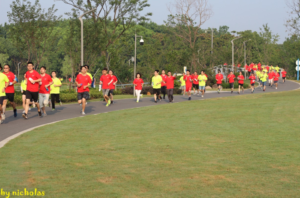 森林公園的早晨綠蔭環(huán)抱、空氣清新、陽(yáng)光明媚。參跑人員沿園內(nèi)道路繞行一周。長(zhǎng)跑健將一馬當(dāng)先,飛奔向前,個(gè)個(gè)生龍活虎。健走員工邁開大步,闊步向前,個(gè)個(gè)爭(zhēng)先。象征著創(chuàng)新中心這個(gè)蒸蒸日上的集體正在奔向美好的未來。