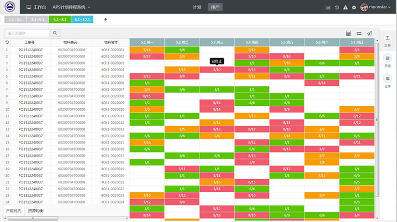 中長(zhǎng)期生產(chǎn)計(jì)劃與短期制造排程的結(jié)合,承接ERP、PLM等系統(tǒng)中的工單、工藝卡片等生產(chǎn)信息,結(jié)合生產(chǎn)設(shè)備、人員以及輔助工裝、刀具、檢具等狀況,生成實(shí)用可行的計(jì)劃排產(chǎn)方案,并可提供多種排產(chǎn)策略選擇,排產(chǎn)動(dòng)態(tài)調(diào)整。